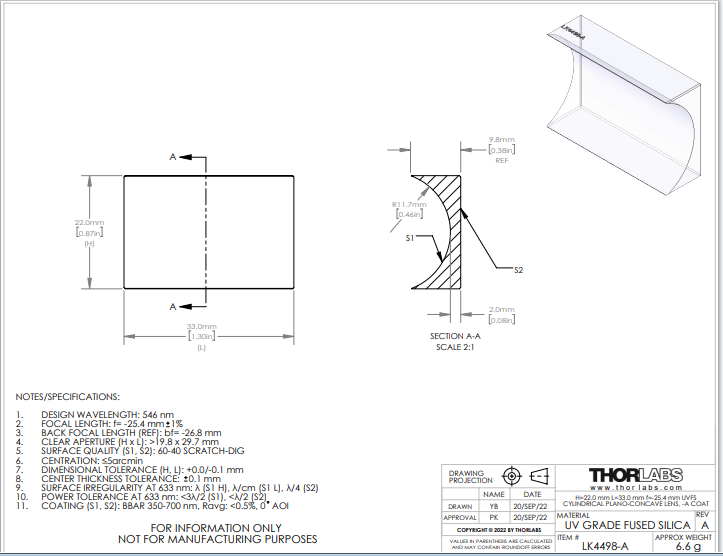 Thorlabs索雷博 LK4498-A 平凹柱面透镜