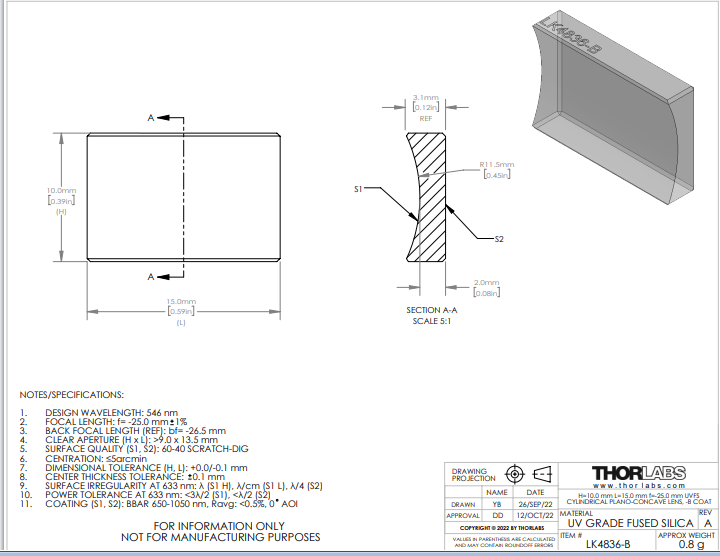Thorlabs索雷博 LK4836-B 平凹柱面透镜
