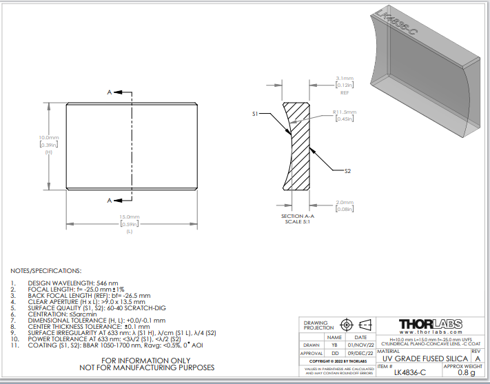 Thorlabs索雷博     LK4836-C   平凹柱面透镜