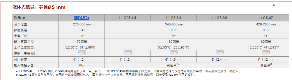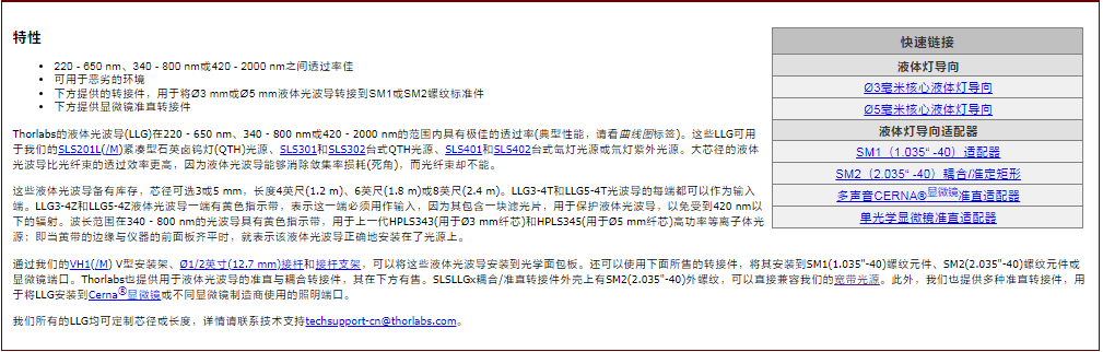 Thorlabs索雷博 LLG3-4T - 液体光波导