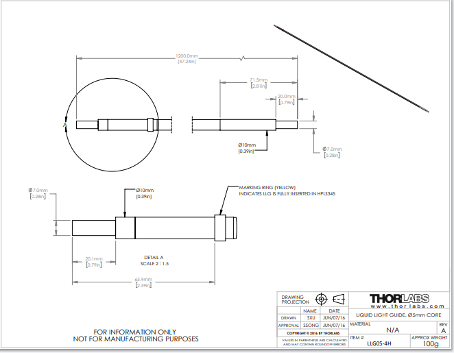 Thorlabs索雷博     LLG05-4H - 液体光波导