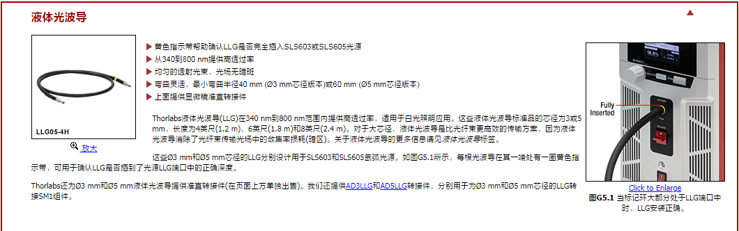 Thorlabs索雷博 LLG5-6H - 液体光波导
