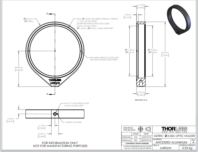 Thorlabs索雷博 LMR3/M - 透镜安装座