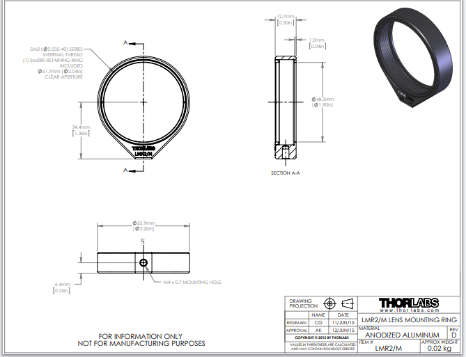 Thorlabs索雷博 LMR2/M - 透镜安装座