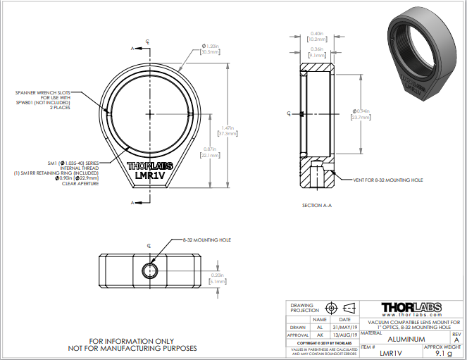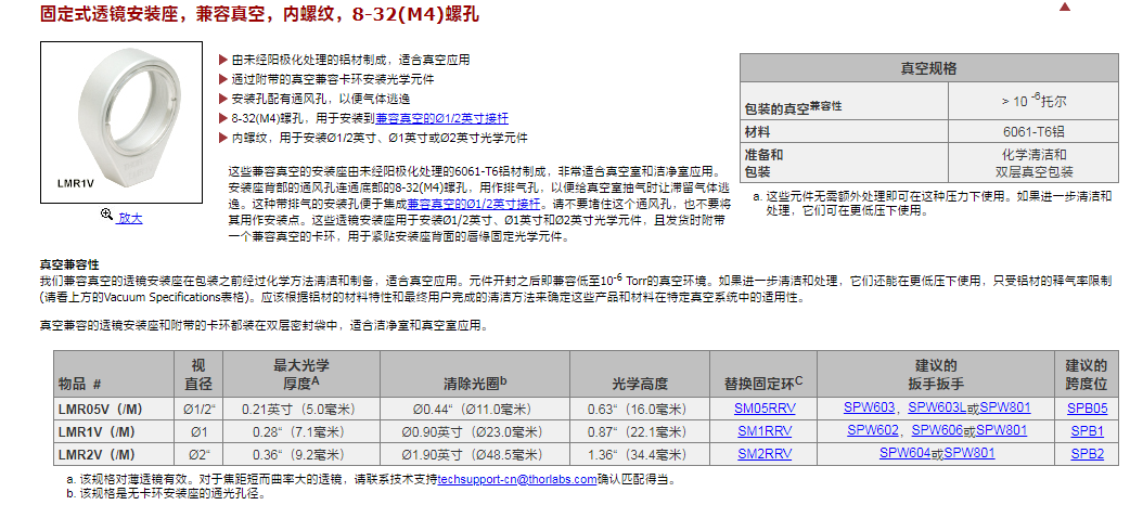 Thorlabs索雷博 LMR1V - 固定式透镜安装座