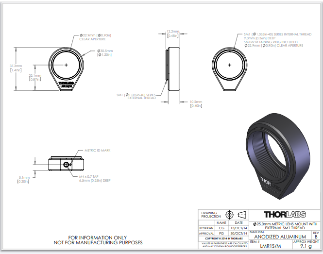 Thorlabs索雷博 LMR1S/M - Ø1英寸透镜座