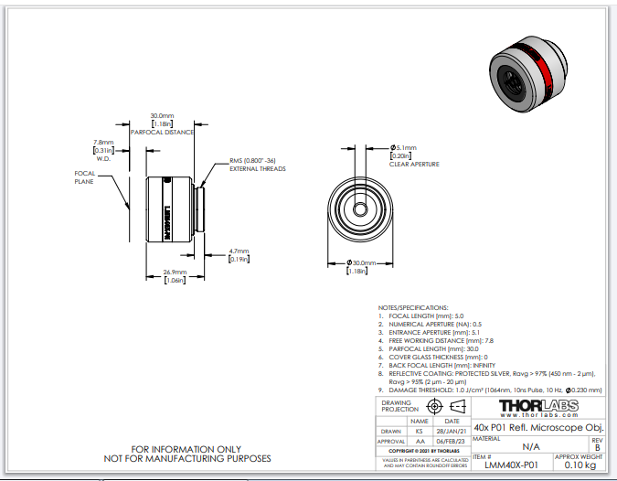 Thorlabs索雷博 LMM40X-P01 - 反射型物镜