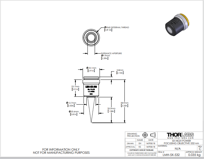 Thorlabs索雷博 LMH-5X-532 - MicroSpot高功率聚焦物镜