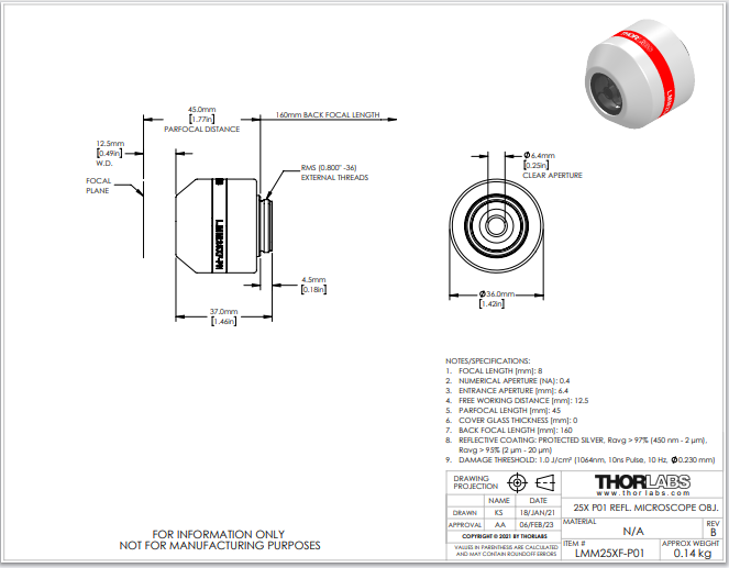 Thorlabs索雷博     LMM25XF-P01 - 反射型物镜