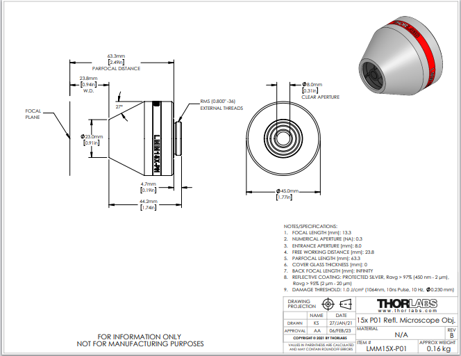 Thorlabs索雷博 LMM15X-P01 - 反射型物镜