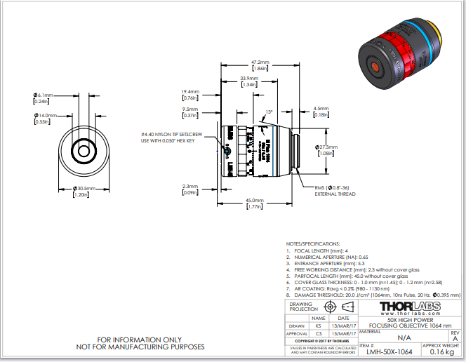 Thorlabs索雷博 LMH-50X-1064 - MicroSpot高功率聚焦物镜