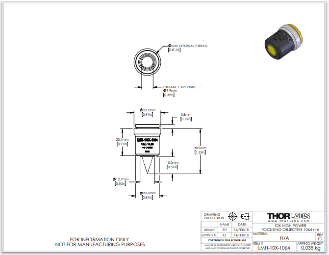 Thorlabs索雷博 LMH-10X-1064 - MicroSpot高功率聚焦物镜