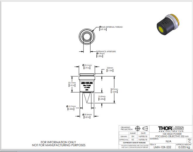 Thorlabs索雷博 LMH-10X-532 - MicroSpot高功率聚焦物镜