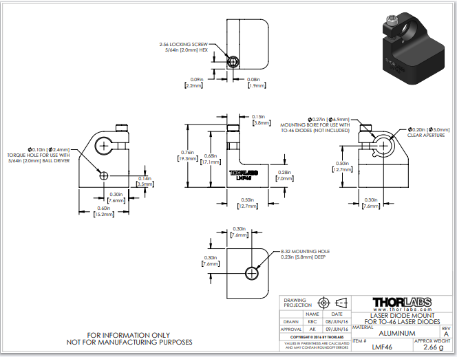 Thorlabs索雷博     LMF46 - 激光二极管安装座