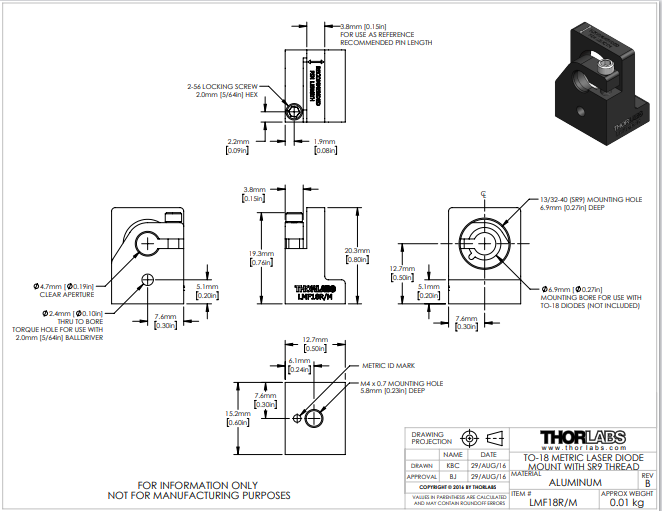Thorlabs索雷博 LMF18R/M - 可安装接杆的安装座