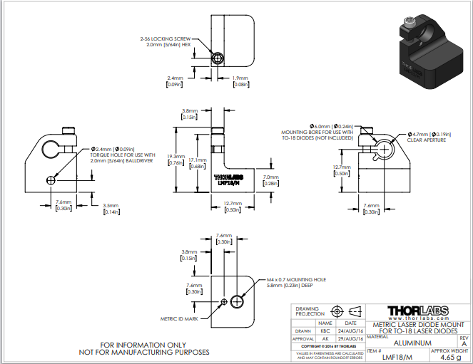 Thorlabs索雷博     LMF18/M - 激光二极管安装座