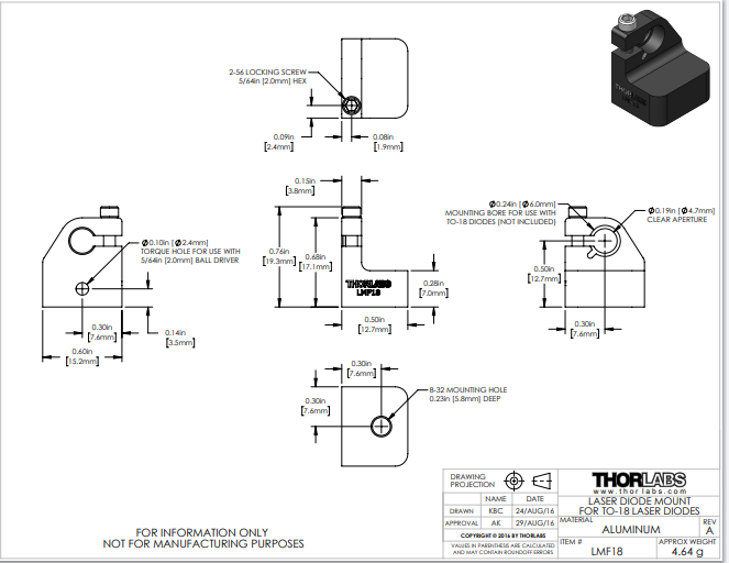 Thorlabs索雷博 LMF18 - 激光二极管安装座
