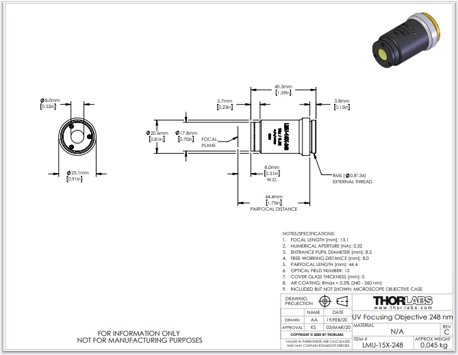 Thorlabs索雷博 LMU-15X-248 - MicroSpot聚焦物镜