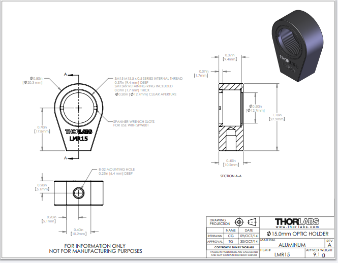 Thorlabs索雷博 LMR15 - 透镜安装座
