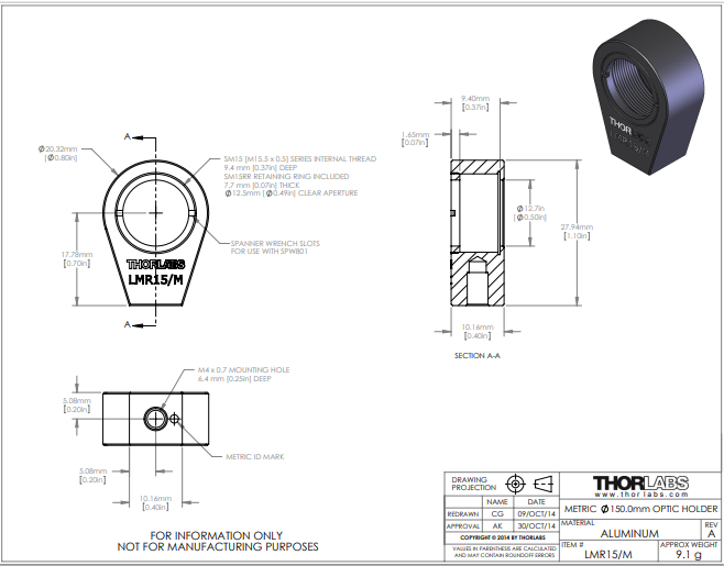 Thorlabs索雷博 LMR15/M - 透镜安装座