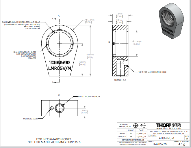 Thorlabs索雷博 LMR05V/M - 固定式透镜安装座