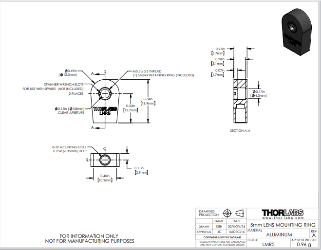Thorlabs索雷博 LMR5 - 透镜安装座