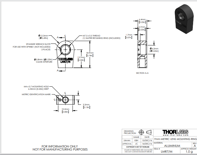 Thorlabs索雷博 LMR7/M - 透镜安装座