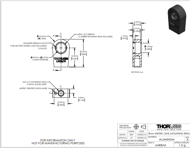 Thorlabs索雷博 LMR8/M - 透镜安装座
