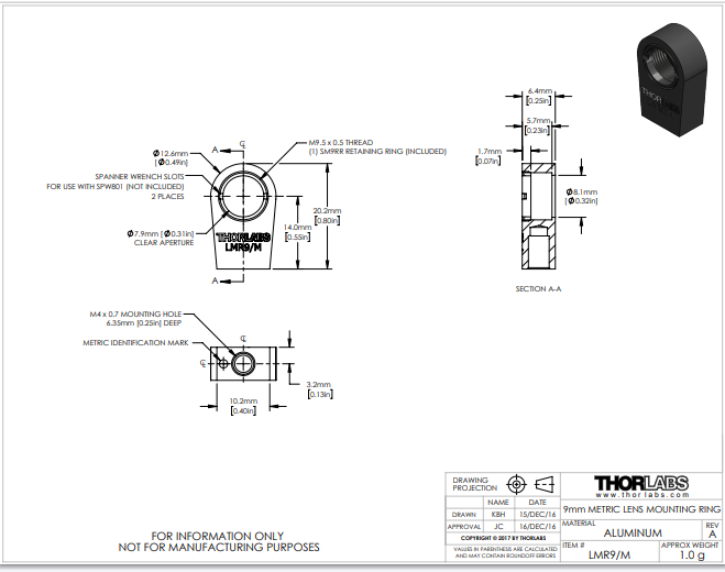 Thorlabs索雷博 LMR9/M - 透镜安装座