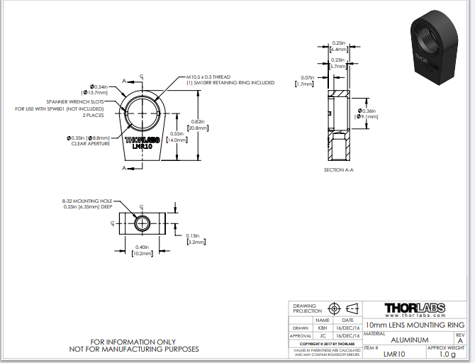 Thorlabs索雷博 LMR10 - 透镜安装座