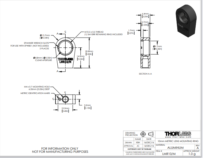 Thorlabs索雷博 LMR10/M - 透镜安装座