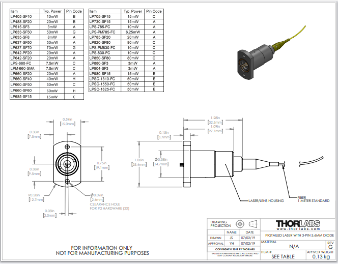 Thorlabs索雷博 LP633-SF50 - 激光二极管