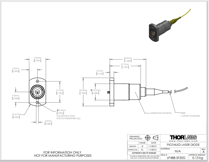 Thorlabs索雷博 LP488-SF20G - 激光二极管