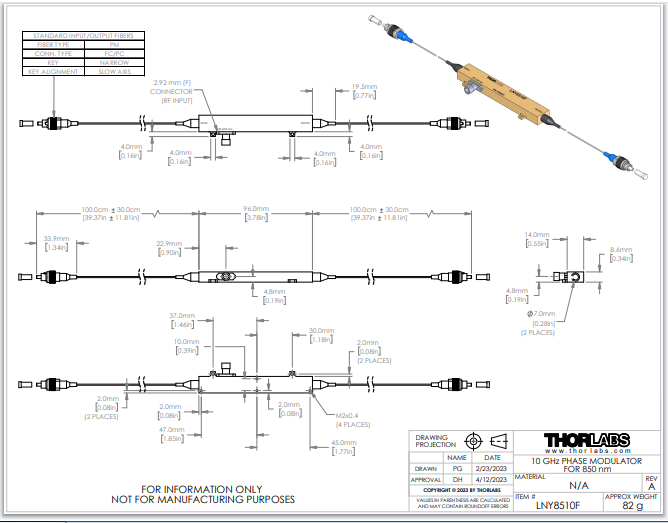 Thorlabs索雷博 LNY8510F - 相位调制器