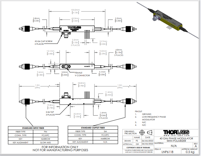 Thorlabs索雷博 LNP6118 - 相位调制器