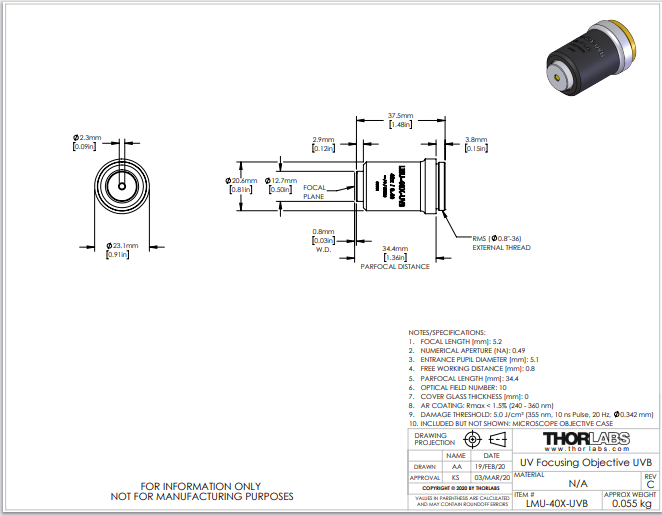 Thorlabs索雷博     LMU-40X-UVB - MicroSpot聚焦物镜