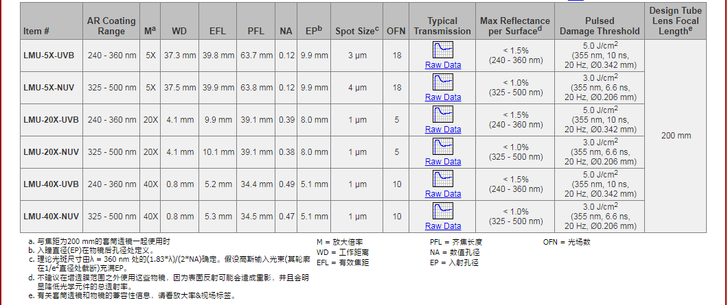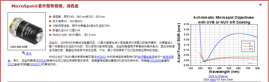 Thorlabs索雷博 LMU-40X-NUV - MicroSpot聚焦物镜