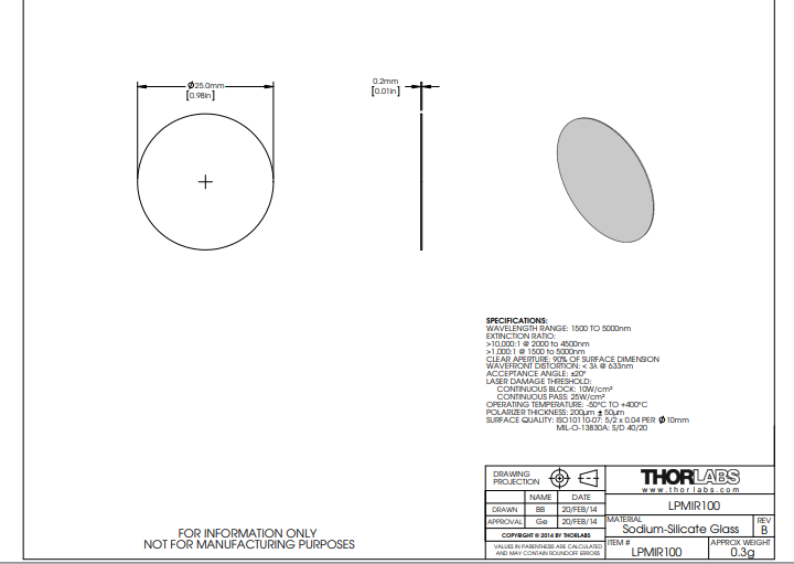 Thorlabs索雷博     LPMIR100 - 线偏振片