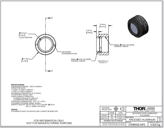 Thorlabs索雷博 LPMIR050-MP2 - 线偏振片