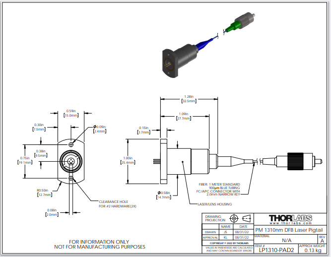 Thorlabs索雷博 LP1310-PAD2 - DFB激光器