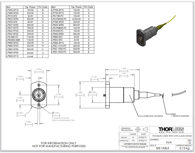 Thorlabs索雷博     LP880-SF3 - 激光二极管
