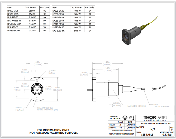 Thorlabs索雷博     LP830-SF30 - 激光二极管