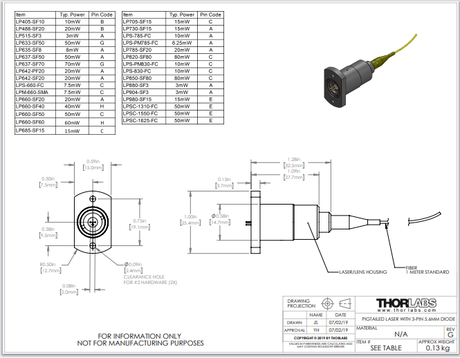 Thorlabs索雷博 LP642-PF20 - 激光二极管