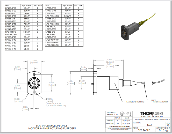 Thorlabs索雷博     LP635-SF8 - 激光二极管