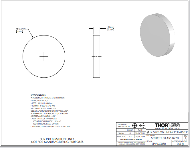 Thorlabs索雷博     LPVISC050 - 线偏振片
