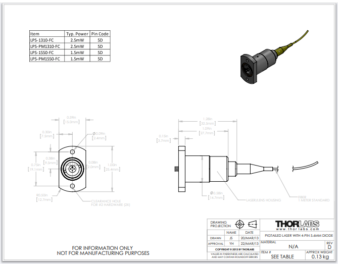 Thorlabs索雷博 LPS-PM1310-FC - 激光二极管