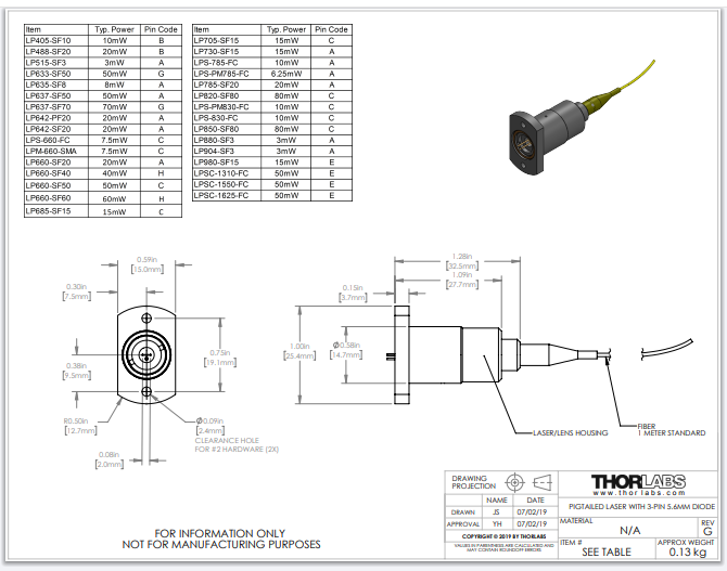 Thorlabs索雷博     LPS-PM785-FC - 激光二极管