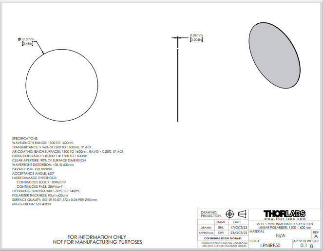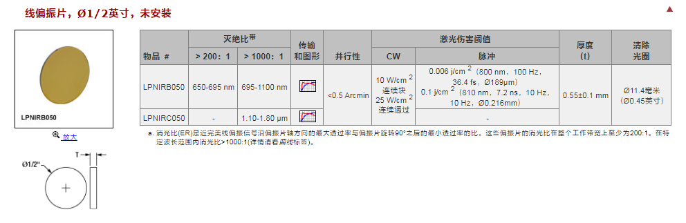 Thorlabs索雷博 LPNIRF050 - 线偏振片
