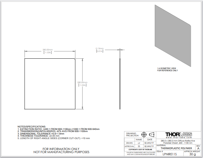Thorlabs索雷博 LPNIRE11S - 漫反射薄膜偏振片