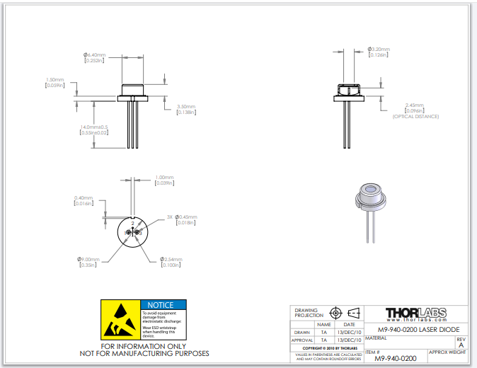 Thorlabs索雷博 M9-940-0200 - 激光二极管